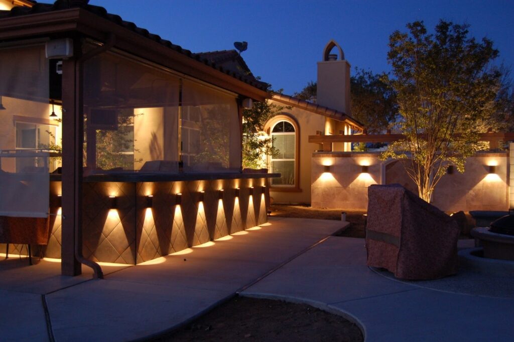 - Wall lights to highlight boundaries or water features